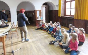 Kinder in der Nordracher Grundschule erlebten hautnah, wie eine Maske erstellt wird.