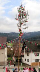 Eckwaldhexen und Eckwaldpuper sorgen für Fasendsfreude. Viele Narren kamen zum Narrenbaum aufstellen in der Unterharmersbacher Ortsmitte.
