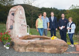 Ein Brunnen aus Sandstein in Herzform, eine schwarze gußeiserne Rose in einer Nische und die Inschrift erinnert auf einer Anhöhe… weiterlesen