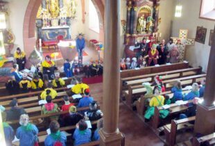 Zu einem fasnachtlichen Familien-Wortgottesdienst wurde am Sonntag, eine Woche vor Fasnacht, in die fasnachtlich geschmückte Sankt Mauritiuskirche nach Prinzbach eingeladen.