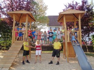 Dank Elterninitiative, Sponsoren und Crowdfunding wurde der Außenbereich mit Kletterhaus, Küche, Murmelbahn für die Kleinsten rundum erneuert.