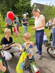 Zur Kinderkirche kamen die kleinen Besucher mit ihren Fahrzeugen, um die Geschichte vom Heiligen Christophorus zu hören.