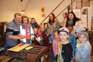 Hombacher Schulkameraden des Jahrgangs 1963/64 besuchten die Historische Buchdruckerei und gingen dann auf Tour.