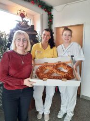 Der VdK Biberach mit Vorstand ManuelaRingwald hat den Bewohnern und Mitarbeitenden eine Spende in Form von Neujahrsbrezeln zukommen lassen.