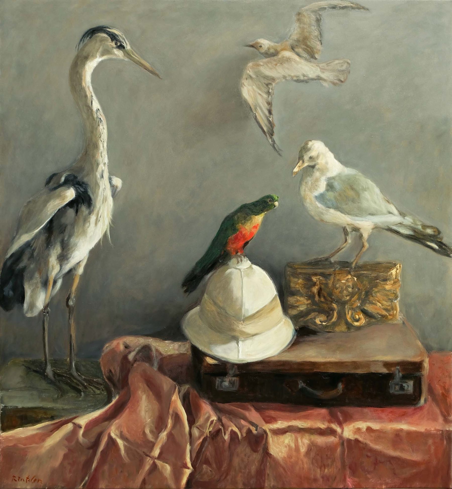 Die Stillleben von Petra Rintelen zeigen in Ölmalerei Früchte, Blumen, Tierpräparate, Schädel, Schalen, Vasen und anderes. Seit Jahrhunderten kennt man solche Malerei, etwa von Georg Flegel (1566 – 1638) bis hin zu Otto Scholderer (1834 – 1902), die in geordneten Kompositionen Muscheln, Käfer, Essen und Früchte in einem hell erleuchteten Raumausschnitt zeigen, exklusiver Teil des Lebensalltags, als Ausstattung für das Esszimmer, gekonnt und beschaulich. Die Stillleben von Petra Rintelen sind anderen Geistes. Im Atelier wurden normale Dekorationsstücke und Alltagsgegenstände in immer neuen Kombinationen arrangiert und als Gemälde in einen von Tonwerten bestimmten, halbdunklen, meditativen nicht perspektivischen Raum gestellt. Durch Anschnitte der Gegenstände und unklare Raumzusammenhänge führt die Künstlerin über die sinnliche Wahrnehmung hinaus. Indem sie die Gegenstände aus den fesselnden Mitten verrückt, schafft sie das Bewusstsein für das ewige Vorbei. In dem Entgleiten alles Vergänglichen findet sie über dem Schönsein zum Sinn und deckt Schein und Eitelkeit des Lebens auf. Ihre Bilder sind Vanitastafeln, erinnern an die Sterblichkeit, sind tiefsinniges »memento mori«, still und meditativ.