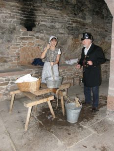 So auch am Donnerstag, 12. April, um 17.30 Uhr. In zeitgemäßer Kleidung des 19. Jahrhunderts veranschaulichen Isidor und Klärle – die Nachrichtensysteme von anno dazumal – wie in dieser Zeit in Zell am Harmersbach gelebt, gewohnt und gearbeitet wurde. Mit wichtiger, durchdringender Stimme und in amtsbewusster Haltung verkündet Stadtbott Isidor, alias Albert Schwarz, die neuesten amtlichen Bekanntmachungen, die das wortgewandte Waschweib Klärle, alias Brigitte Sum-Hermann, ebenso nüchtern wie witzig kommentiert, dem Volk sozusagen aus der Seele spricht und für Schmunzeln sorgt. Die Erlebnisführung dauert rund eineinhalb Stunden und kostet sechzehn Euro pro Person, inklusive Getränk und Wegzehrung.