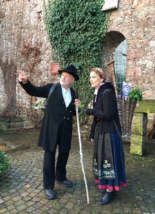 »Aus unserem Alltag kennen wir viele Sprichwörter, doch nur wenige wissen, woher sie stammen«, weiß Husierer Zimpfer, alias Albert Schwarz. Zusammen mit dem Marktwiib Kätterle, auch bekannt als Brigitte Sum-Herrmann, führt er kurzweilig, unterhaltsam und Sprüche klopfend durchs Zeller Städtle. Denn die beiden wissen, wo in Zell das Geld auf den Kopf gehauen wird, der Bartel den Most holt, was Schlitzohren auf dem Kerbholz haben und vieles mehr. Wer wissen will, wo man in Zell die Kurve kratzt oder sich aus dem Staub macht, wenn Torschlusspanik aufkommt, der ist bei den Sprücheklopfern goldrichtig. Doch keine Panik, Marktwiib Kätterle erzählt beruhigend: »Keine Angst, wir werden keinem die Leviten lesen oder das Wasser abgraben.« Lachend fügt sie hinzu »Haben wir Sie jetzt auf die Folter gespannt? – Dann auf zur Führung am 28. August, denn wer zuerst kommt mahlt zuerst.«