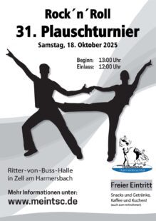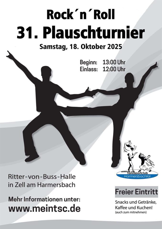 Der Tanzsportclub Harmersbachtal richtet am Samstag, 18. Oktober 2025, in der Ritter-von-Buß-Halle sein 31. Rock’n’Roll-Plauschturnier aus. Erwartet werden wieder Kinder- und Jugendpaare aus ganz Baden-Württemberg, die um Pokale und Platzierungen tanzen. Auch der TSC Harmersbachtal geht mit starken Nachwuchspaaren an den Start und hofft, einige Pokale in Zell zu behalten.